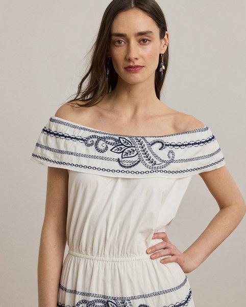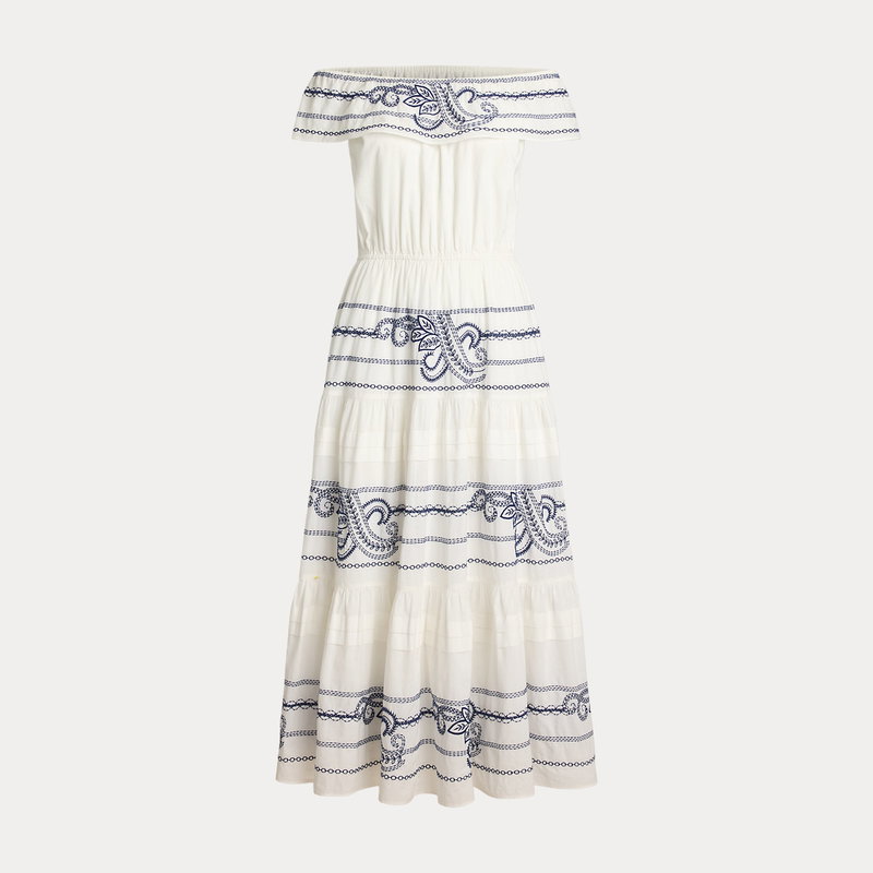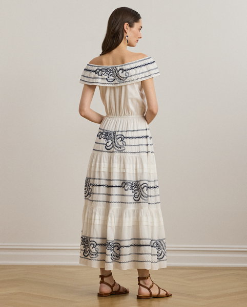 Embroidered Voile Off-the-Shoulder Dress