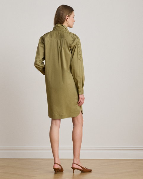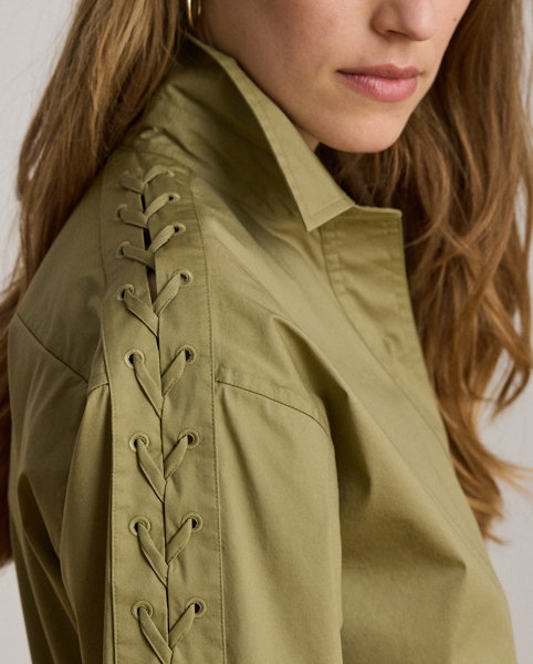 Lace-Up-Trim Cotton-Blend Shirt Dress