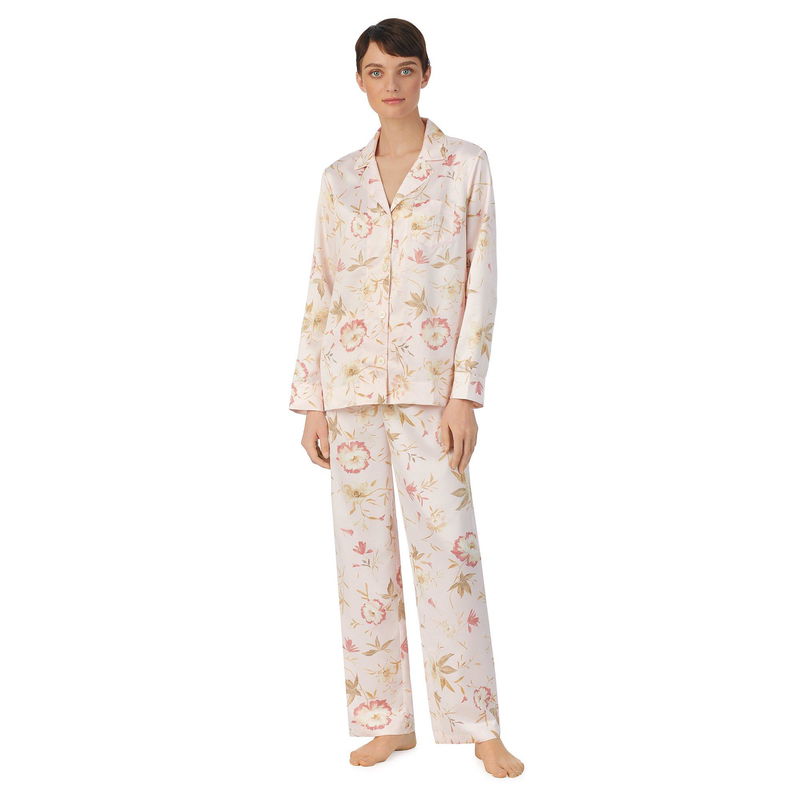 Slumber in style with this striking Floral Satin Sleep Set from Lauren by Ralph Lauren. Expertly crafted from 100% polyester for a luxurious lightweight appeal that enhances your comfort with its breathable feel and soft touch. Dream deeply with the smooth feel of this set with the shirt boasting long sleeves, a notch lapel collar, a button-down fastening and a smart chest pocket for structure, whilst the trousers boast a comfortable fit with their elasticated waistband and drawcord tie. Featuring an all-over floral print, punctuated by the embroidered logo on the shirt for a distinctive finish.