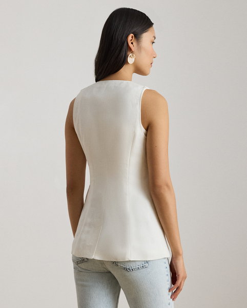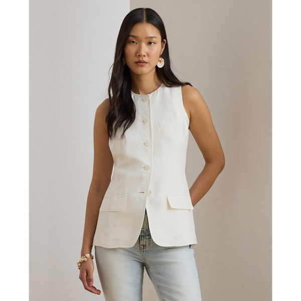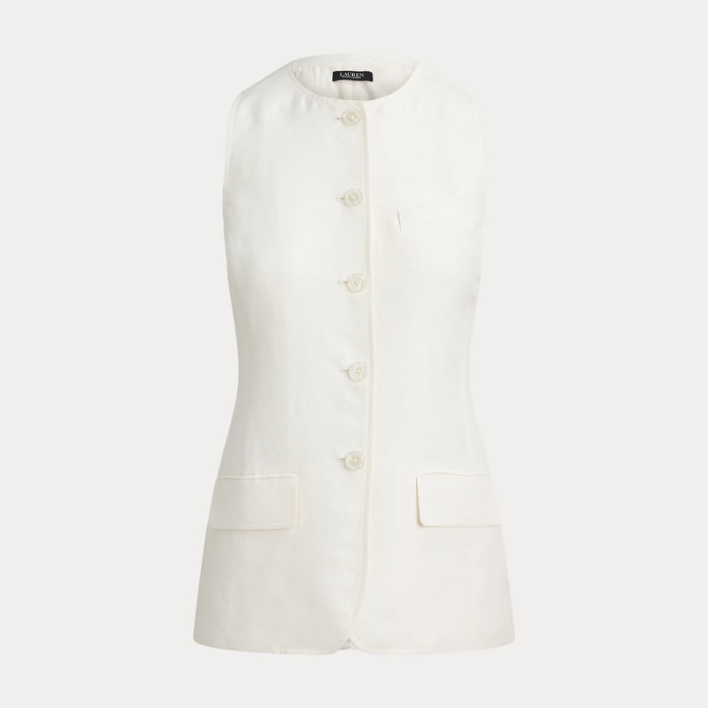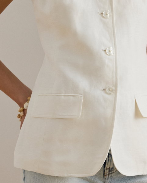 Inspired by sartorial blazers and waistcoats, this lightweight linen-blend shirt features a sleeveless silhouette with flap pockets, princess seams and imitation genuine mother-of-pearl buttons.