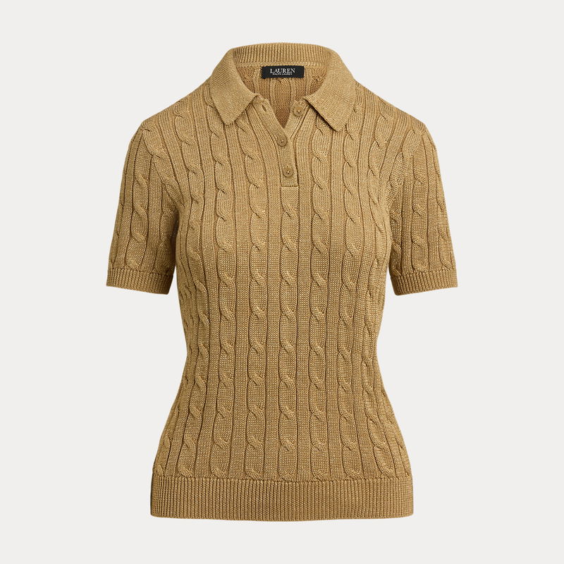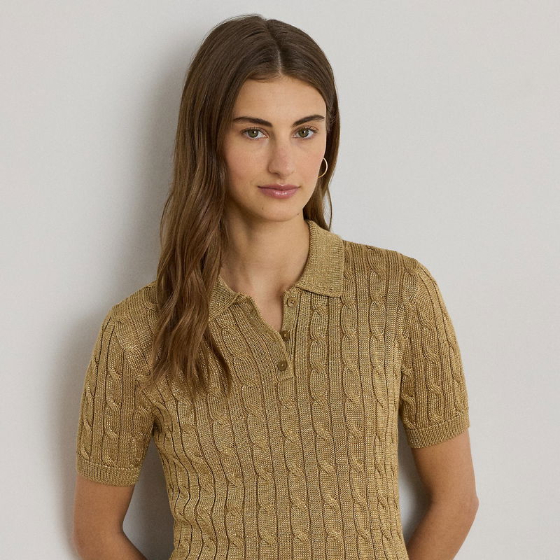 Metallic Cable-Knit Polo Sweater