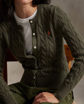 A metallic, linen-blend rib-knit construction brings subtle dimension and a beautiful sheen to this slim-fitting cardigan, while "Lauren Ralph Lauren Lauren"-engraved pearlised buttons add a signature finish.