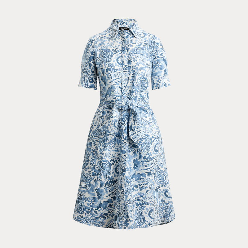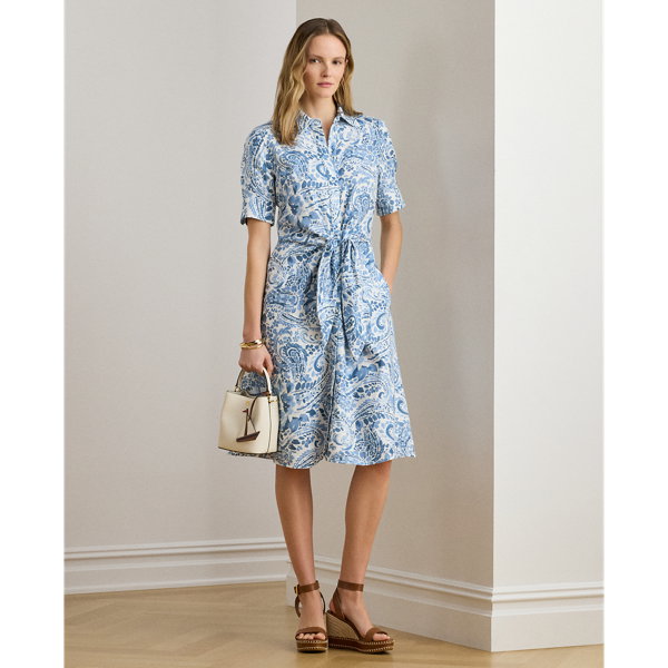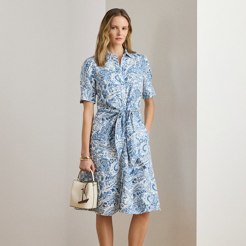 Paisley Tie-Front Linen Shirt Dress