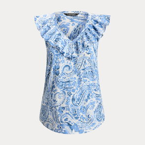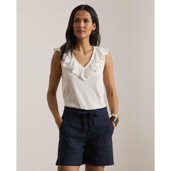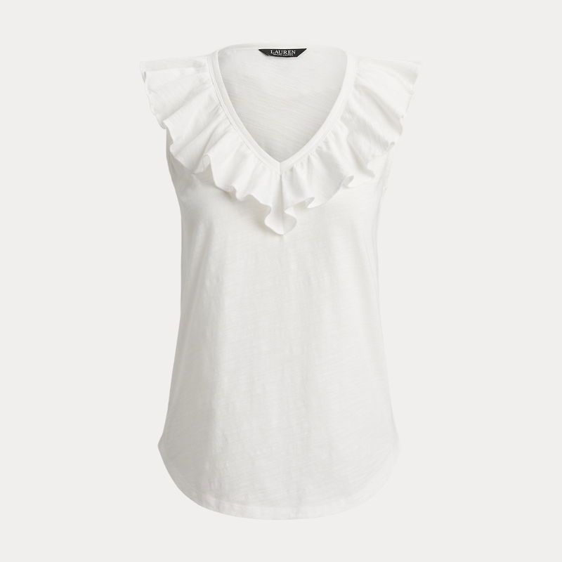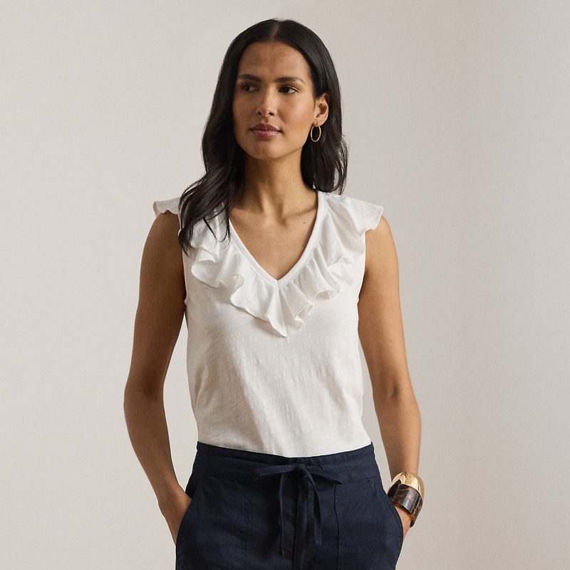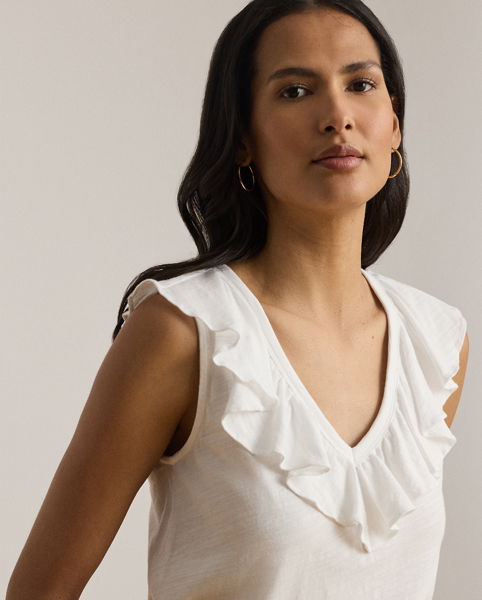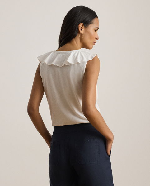 Ruffle-Trim Slub Jersey Sleeveless Top
