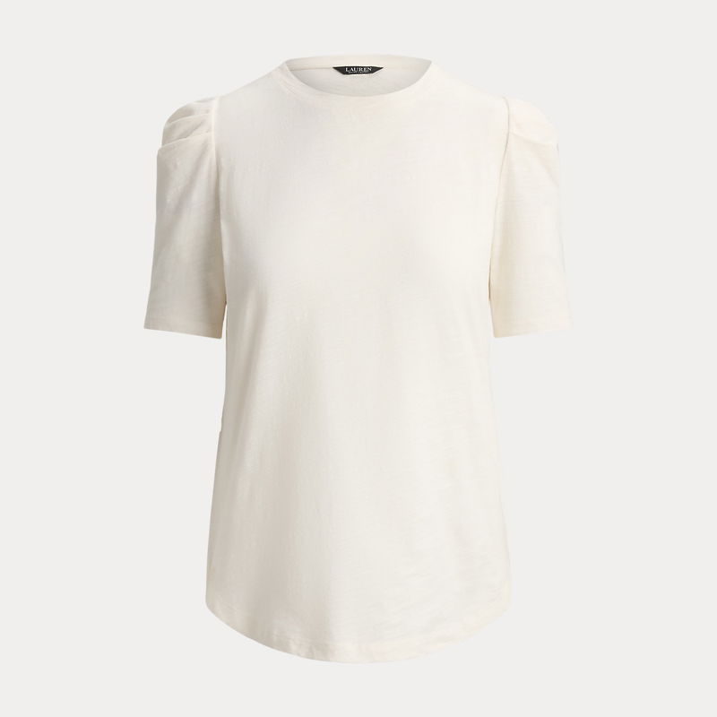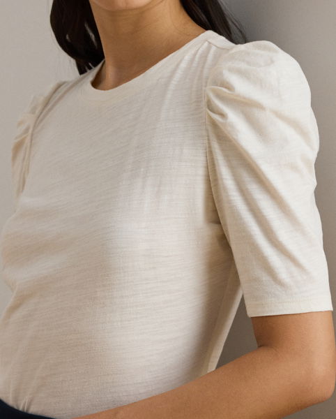 Made from soft, breathable slub jersey, this crewneck top is distinguished by feminine puffed sleeves. An embroidered logo on the hem completes the look.