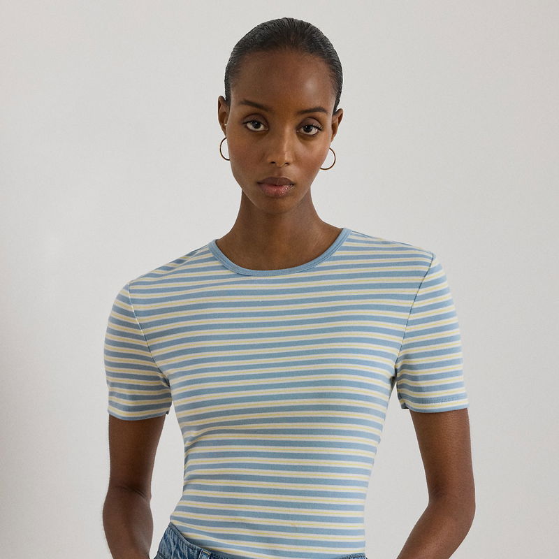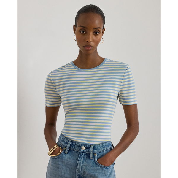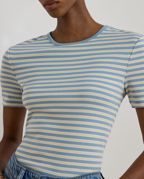 Crafted from stretch cotton, this classic short-sleeve rib-knit T-shirt features yarn-dyed stripes and our signature embroidered logo on the hem.