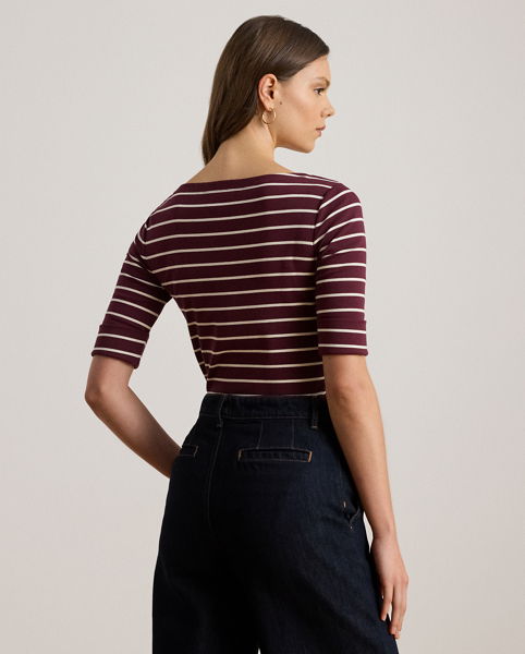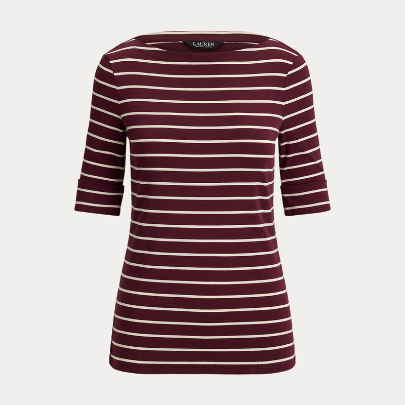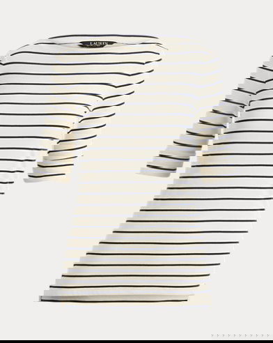 Yarn-dyed with classic horizontal stripes, this boatneck tee is made with breathable stretch cotton for a soft hand feel. An “LRL”-embroidered logo on the hem adds a subtle signature finish.