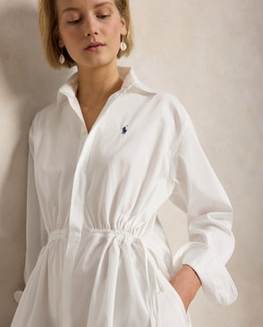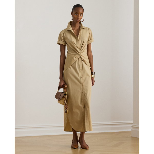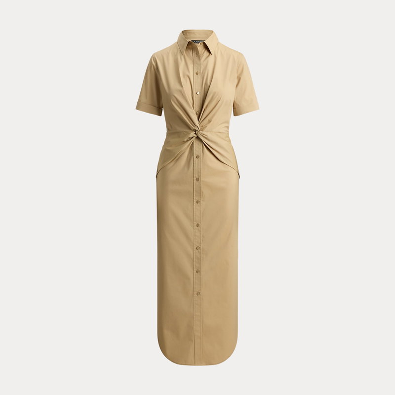 Twist-Front Cotton-Blend Shirt Dress