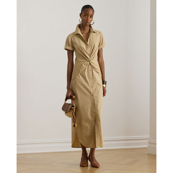 Twist-Front Cotton-Blend Shirtdress