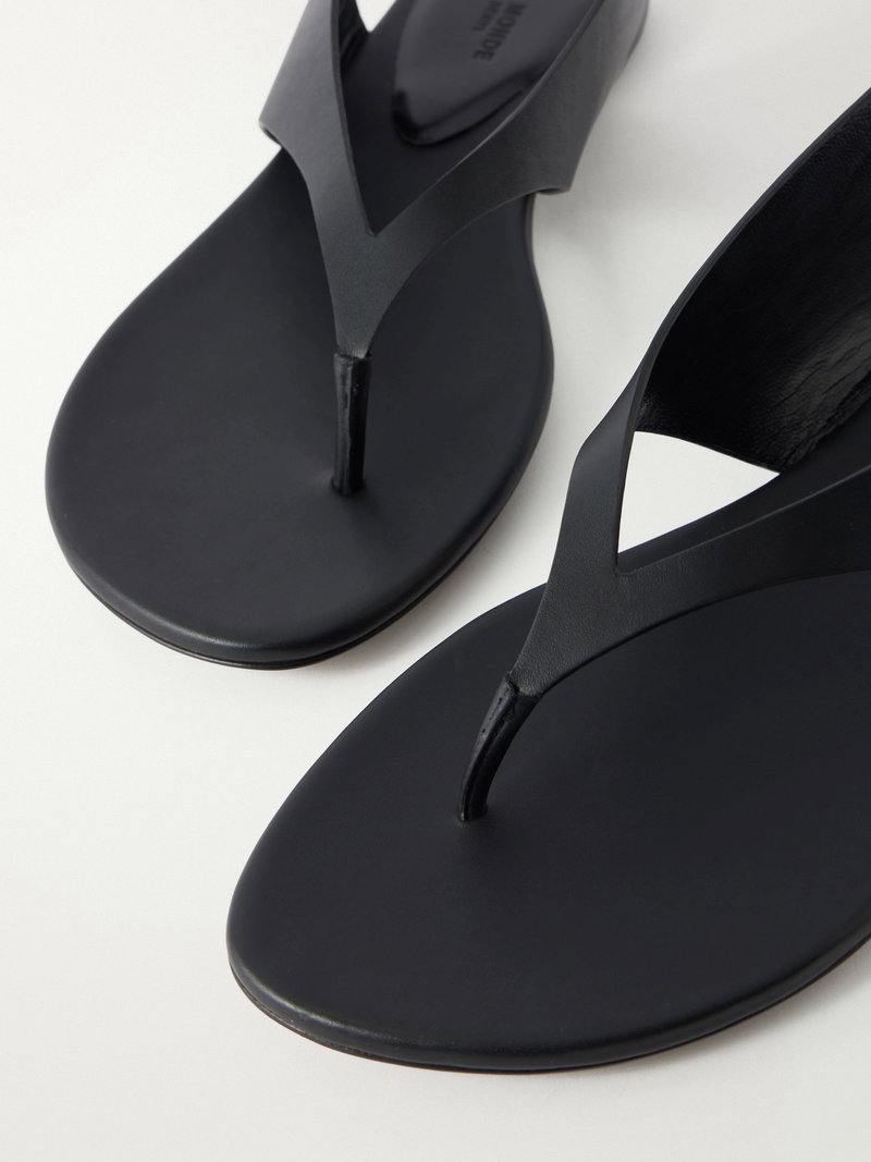 Le Monde Beryl approaches footwear with a sense of quiet discipline, where form is refined until only the essential remains. The 'Langley' thong flat is handcrafted in smooth calf leather with a barely-there sole and subtle elevation, reduced to line and gesture with clarity.