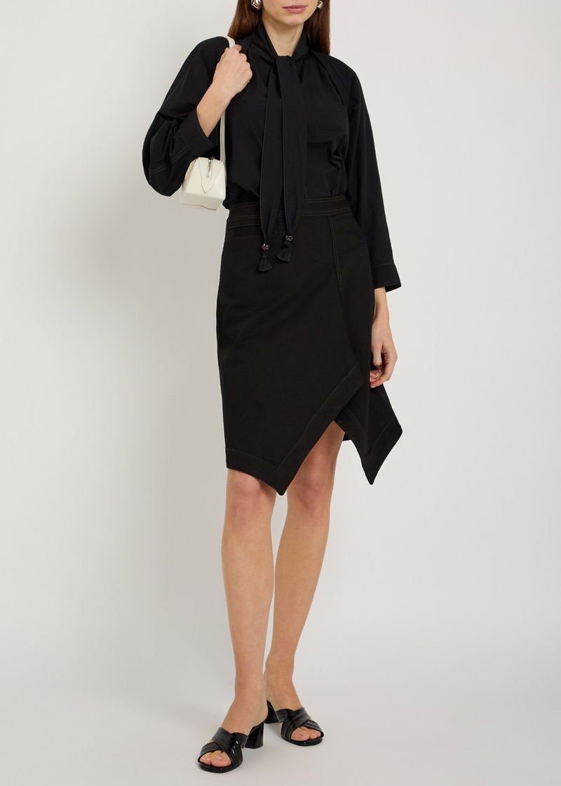 Asymmetric Denim Mini Skirt