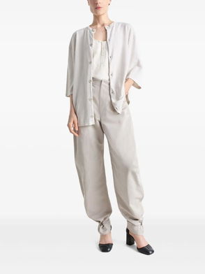 The Lemaire wardrobe is designed to be modular, with supple silhouettes and a soft colour palette allowing outfits to be restyled and accented over time. Collections are produced in Europe, Turkey and Morocco. Bags and leather goods are made in Spain and Italy, where a collaborative effort with artisans has brought novel approaches to age-old techniques.