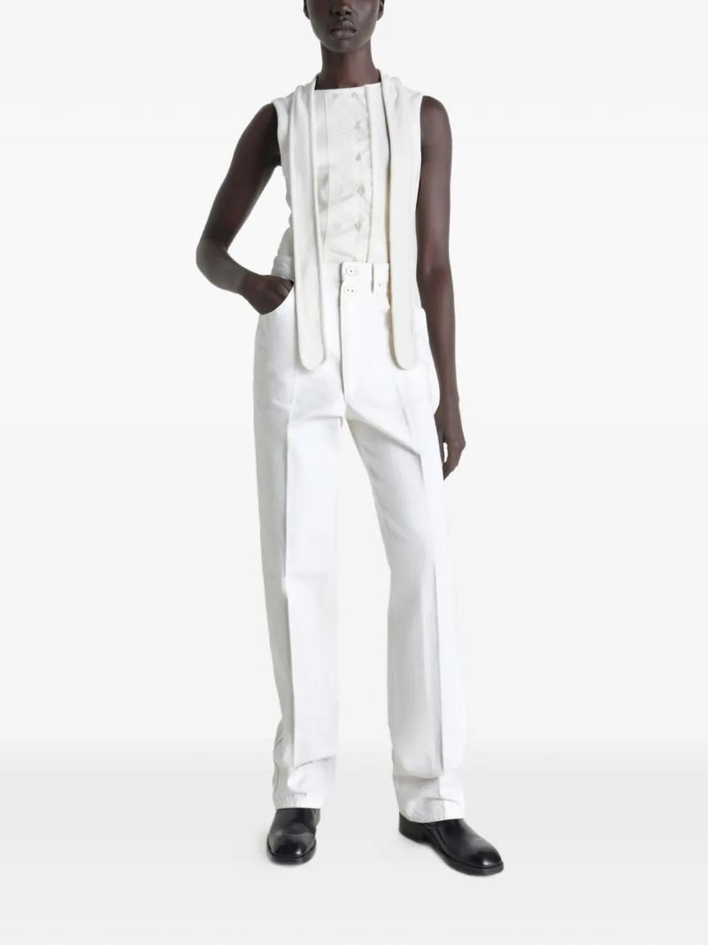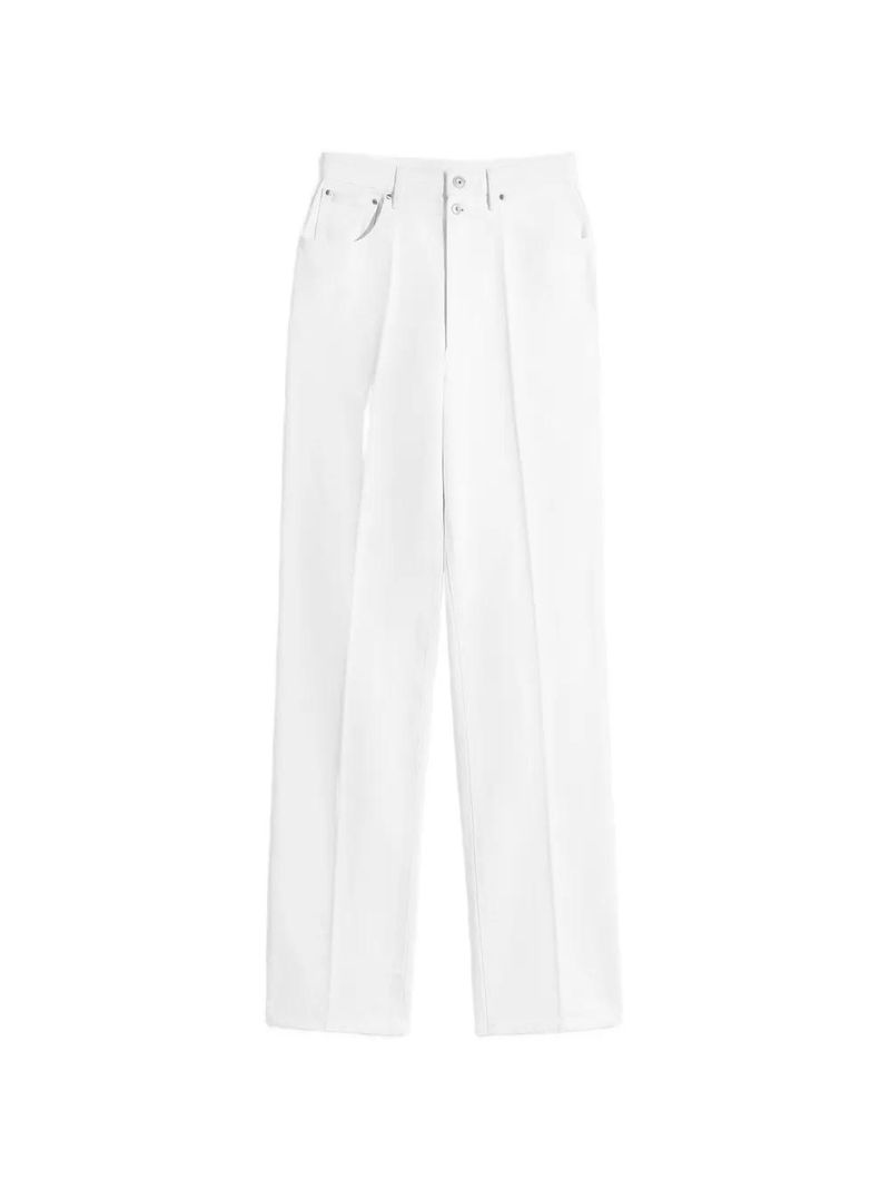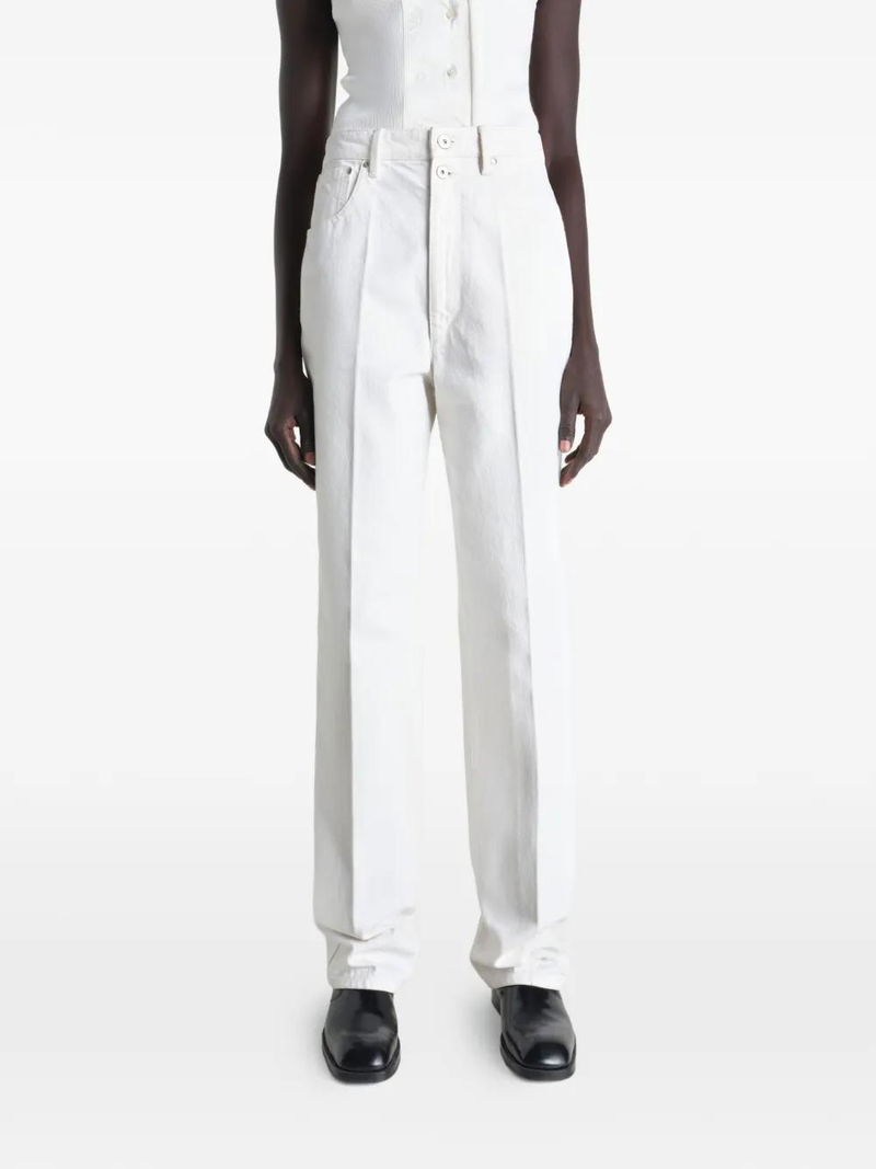 White, high-waisted, straight leg, double-button fastening, jacron detail, five pockets.