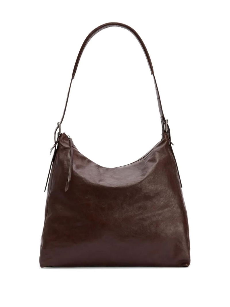 Belted Leather Tote Bag - Brown