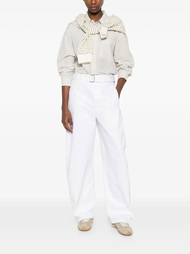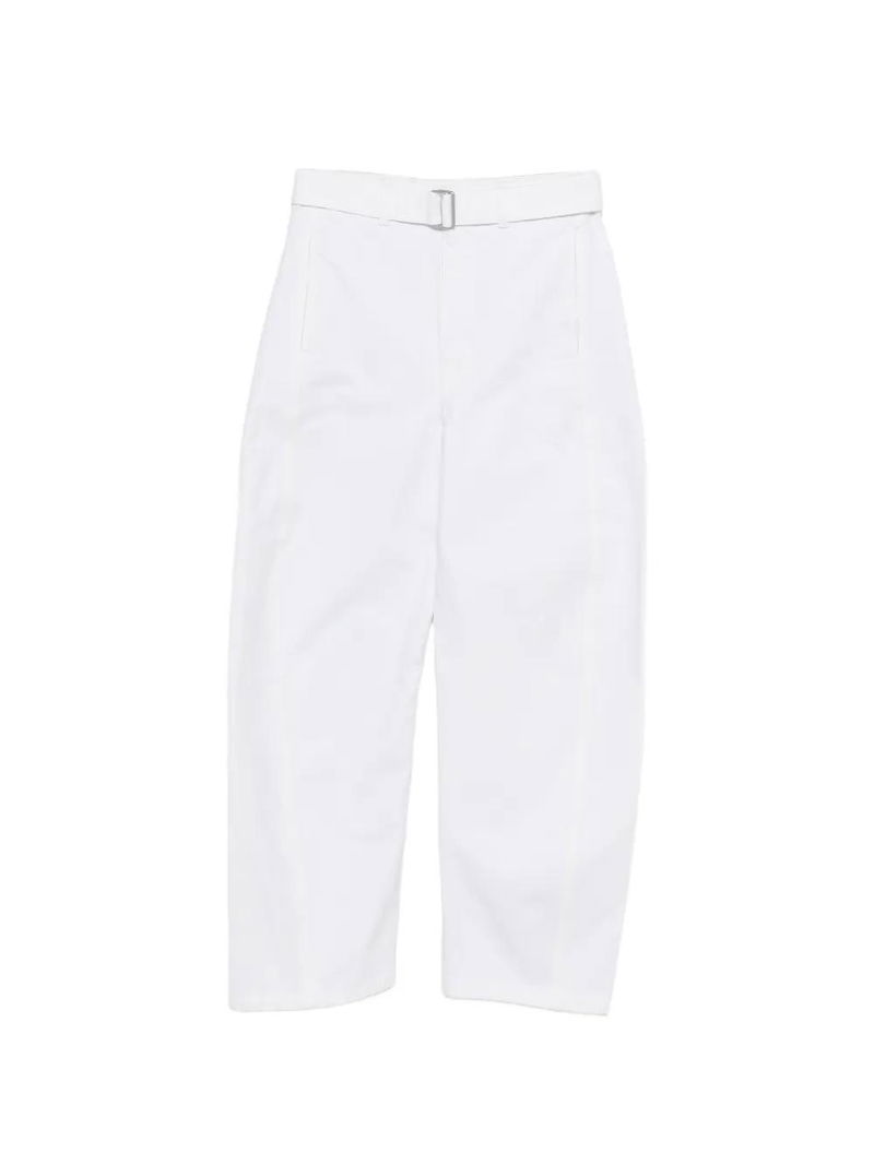 Milk white, belt, twisted seams.