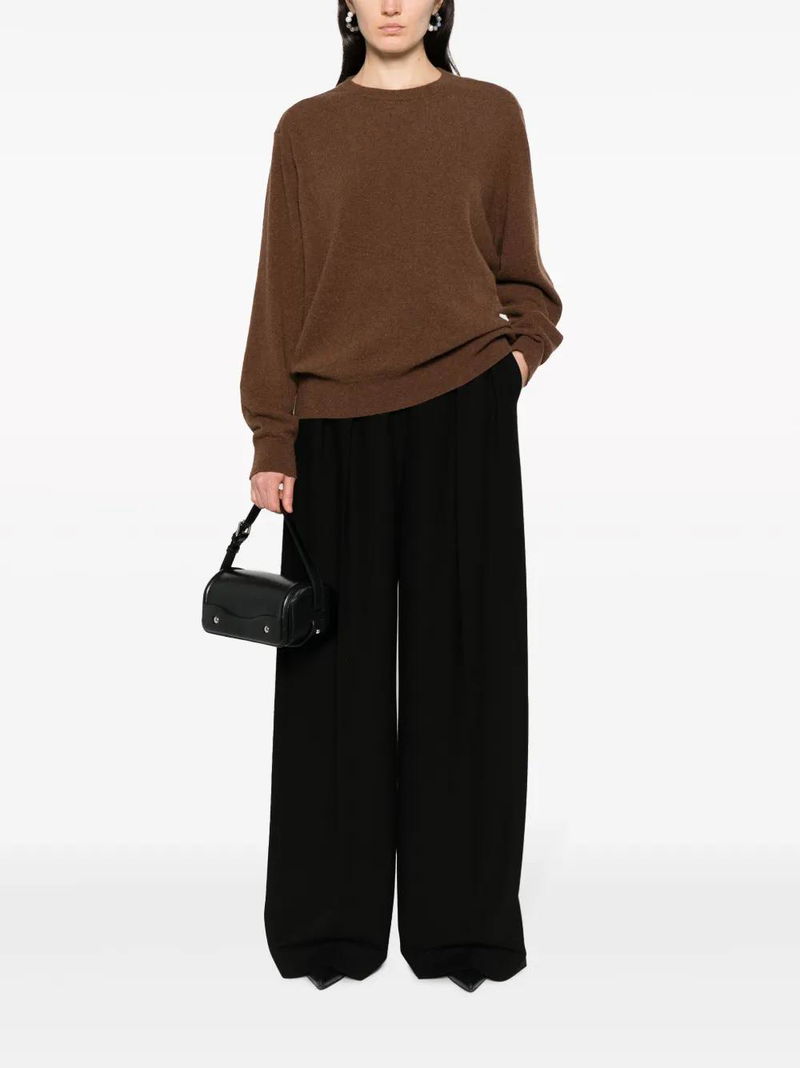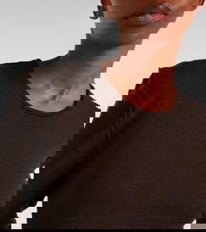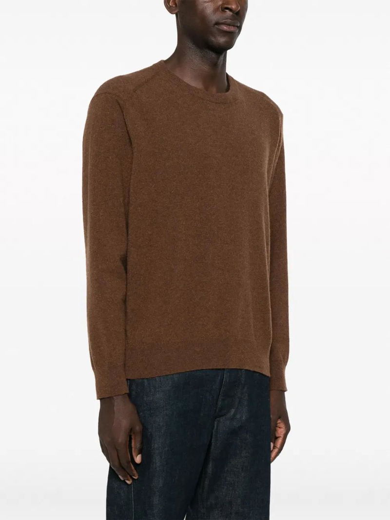 chocolate brown wool blend fine knit crew neck long sleeves ribbed cuffs and hem When buying this unisex item, keep in mind that it is graded in standard men's sizing.