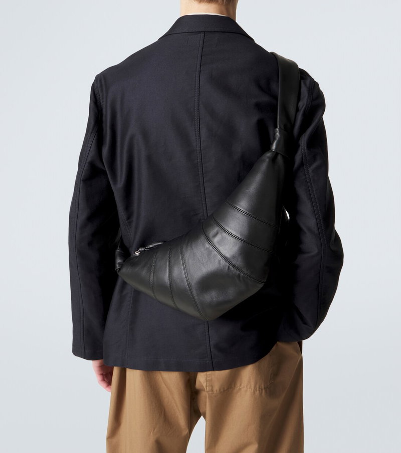 Meet your new favorite design from Lemaire: the Croissant bag. Featuring a knotted shoulder strap, this Medium style is made from black leather that’s topstitched to resemble its namesake pastry.