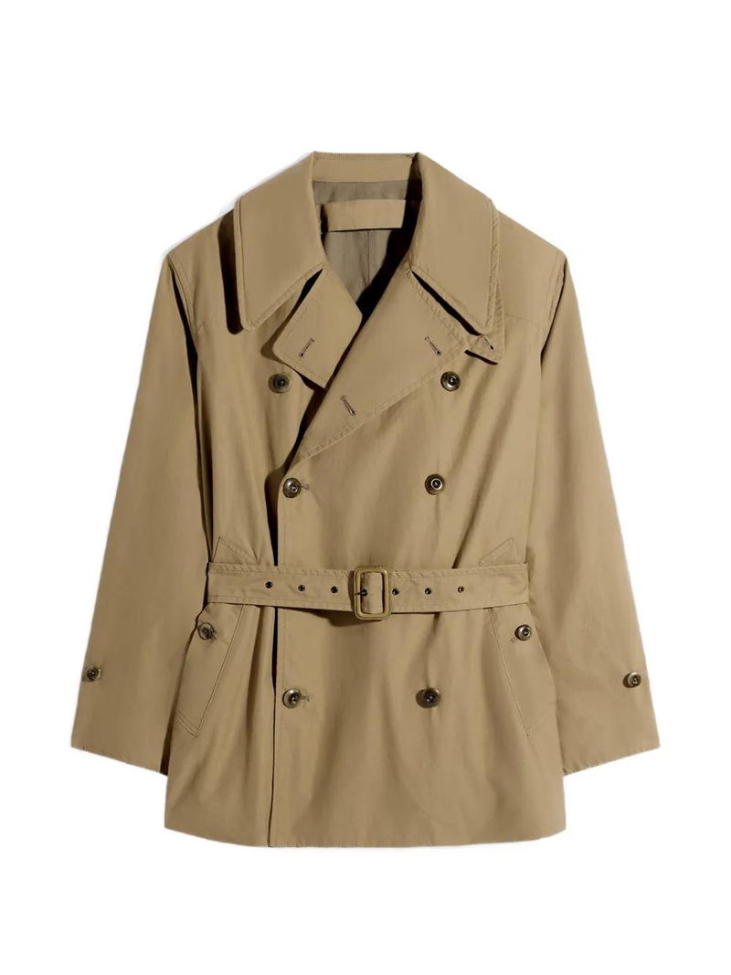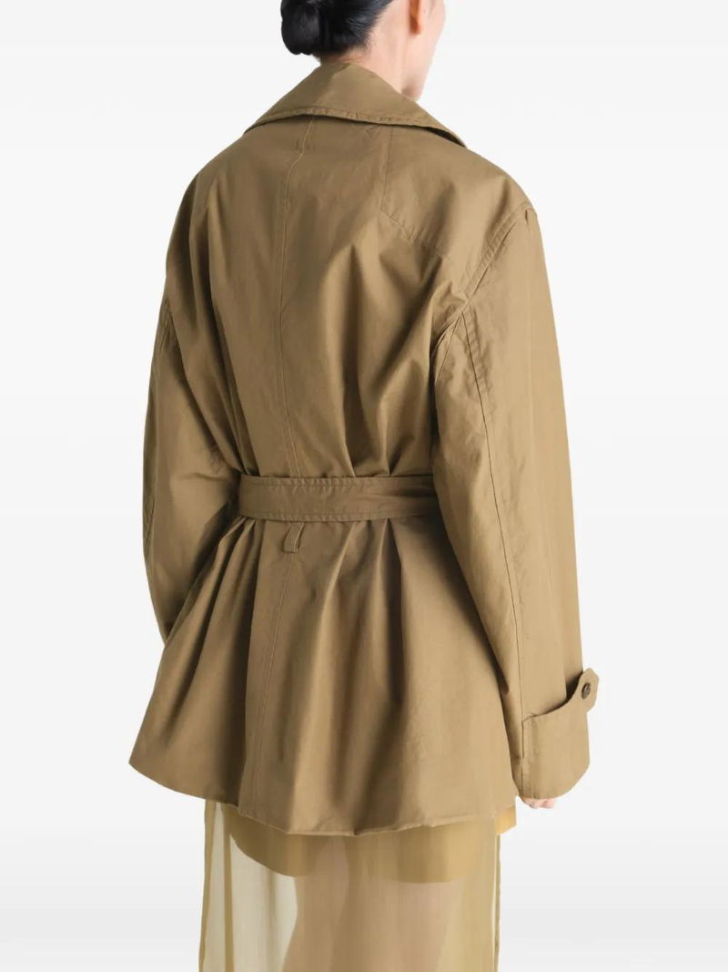 Green water-repellent double-breasted belt button fastening tab cuffs.
