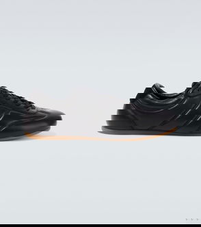 Low-top buffed leather sneakers in off-white.· Square toe· Elasticized gusset at vamp· Buffed leather lining· Topstitching at welt· Treaded rubber sole.