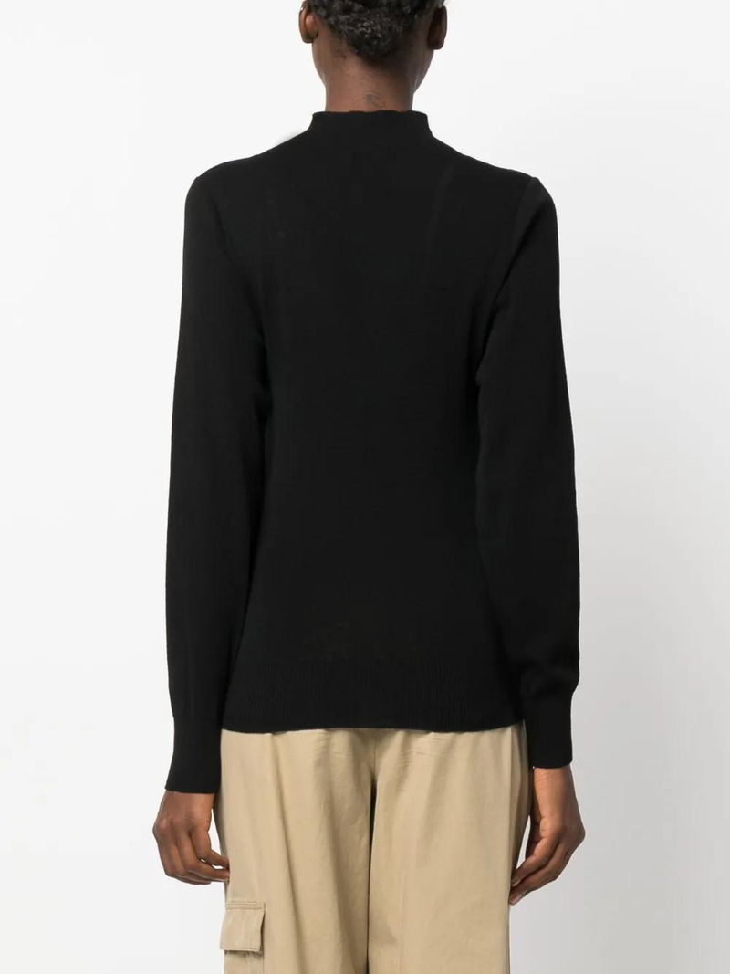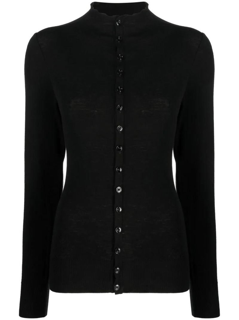 High-neck Wool Cardigan - Black
