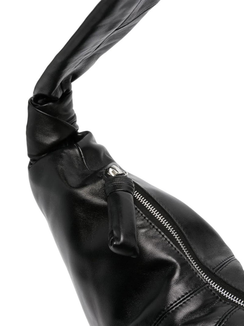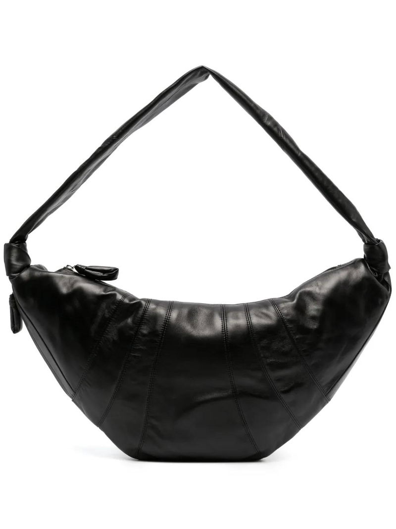 Large Croissant Leather Shoulder Bag - Black