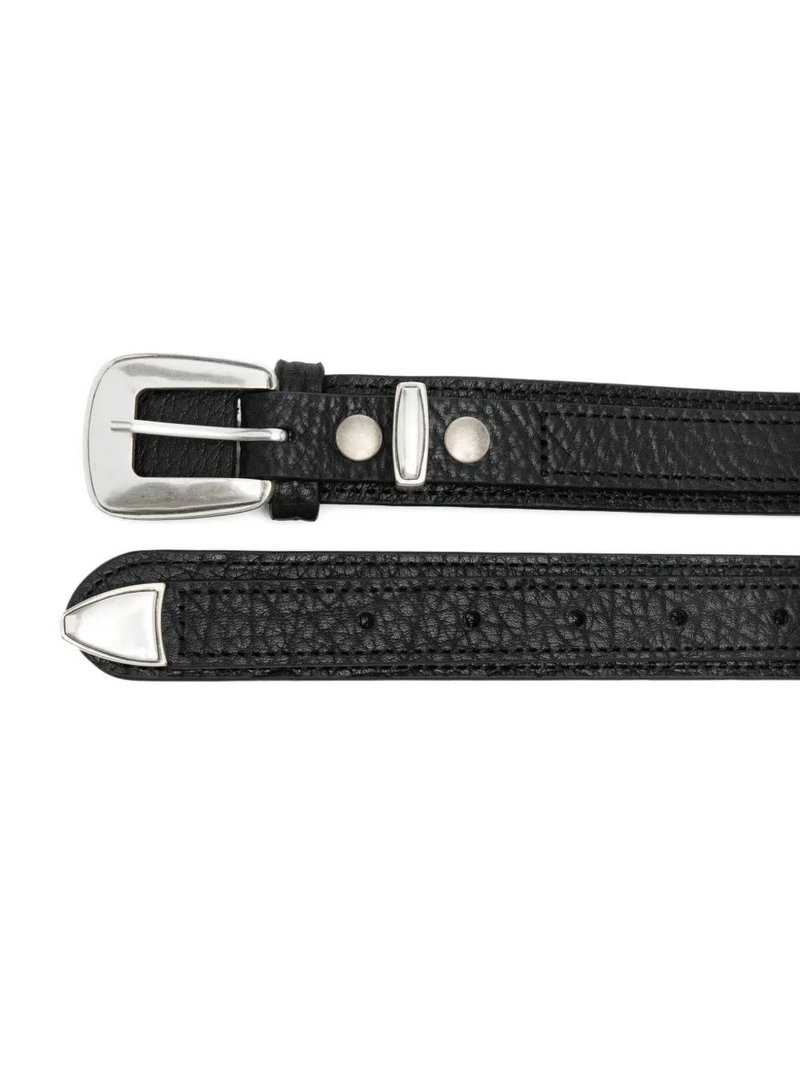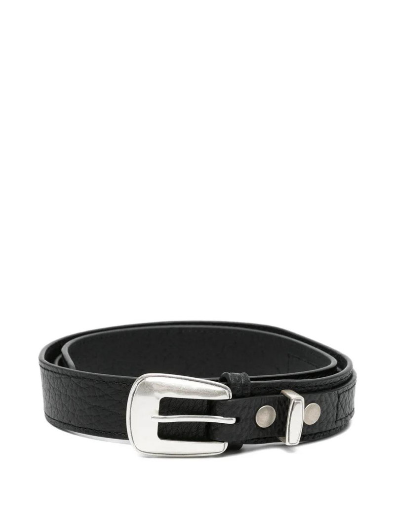 Black leather grained finish silver-tone hardware buckle fastening adjustable fit This piece comes complete with a protective dust bag