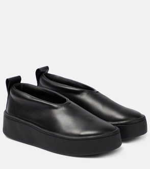Low-top LWG-certified grained leather sneakers in black.· Suede trim at square toe· Lace-up closure· Suede and buffed leather lining· Treaded rubber sole.