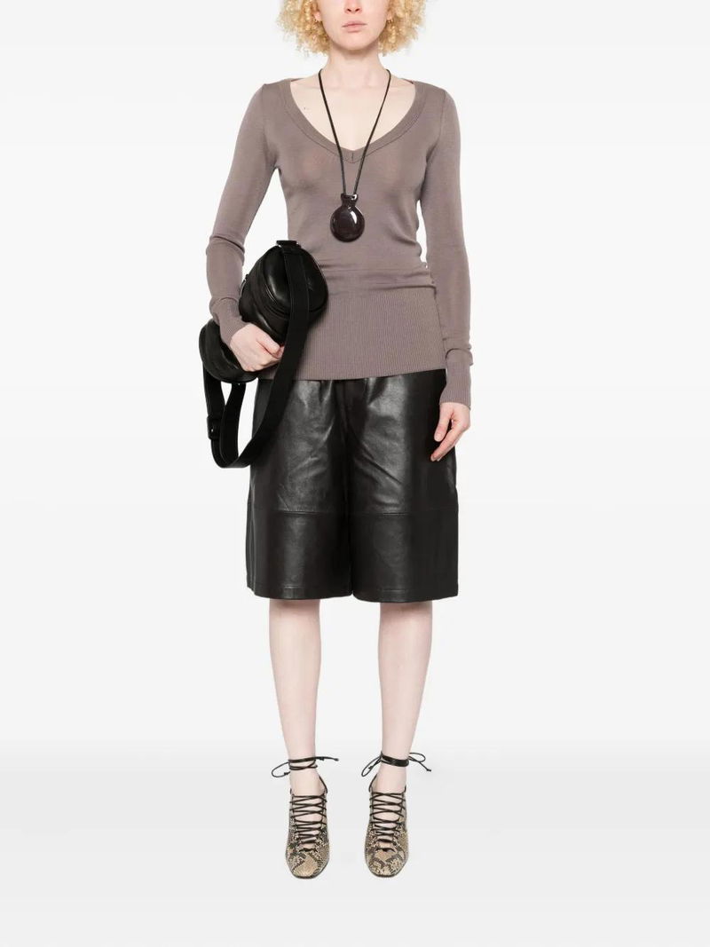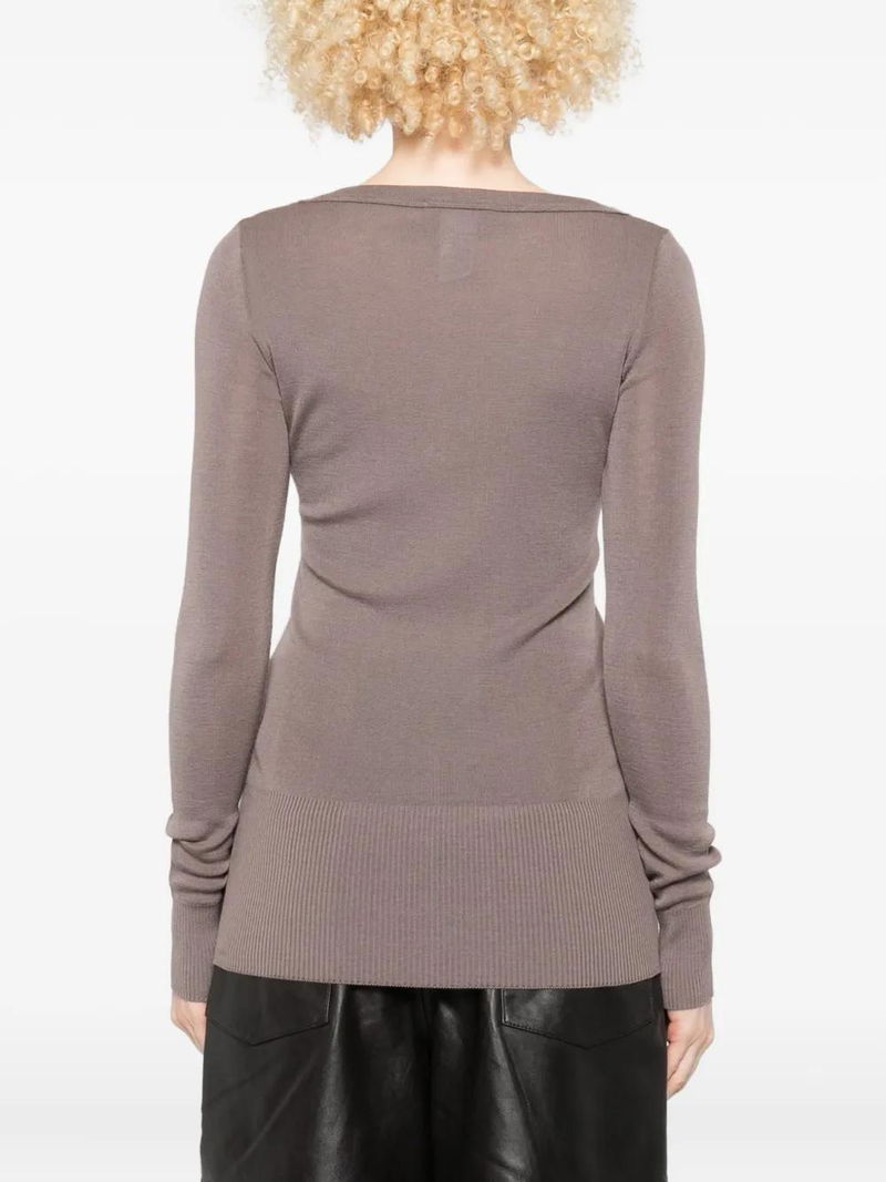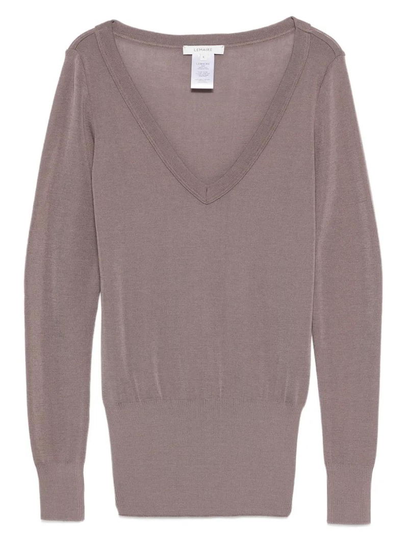 Taupe V-neck long sleeves ribbed hem ribbed cuffs.