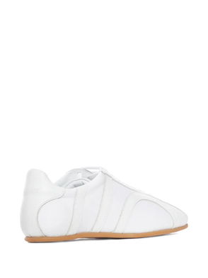 White panelled design suede details lace-up fastening flat sole round toe.