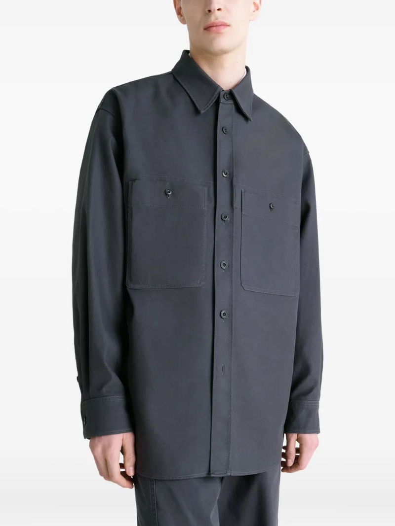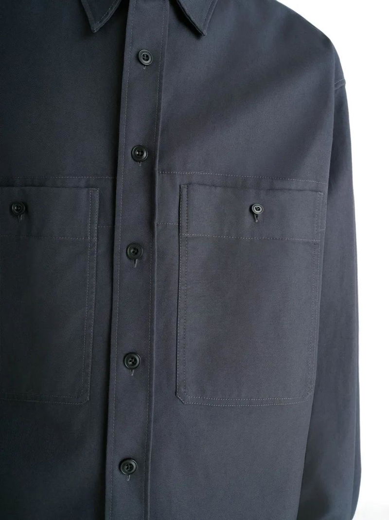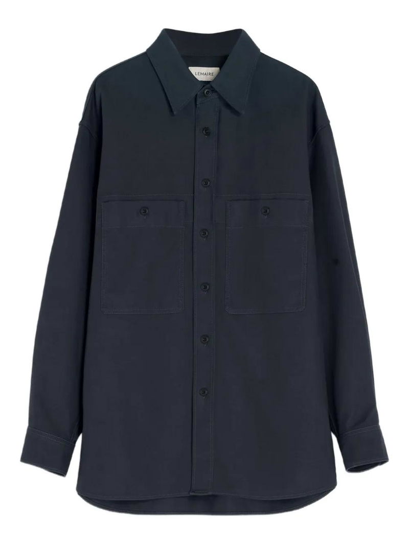 Patch-pocket Twill Overshirt - Blue