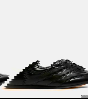 Low-top grained leather sneakers in off-white.· Square toe· Piping at vamp and collar· Topstitching at welt· Logo embossed at padded leather footbed · Buffed leather lining· Crepe rubber sole.