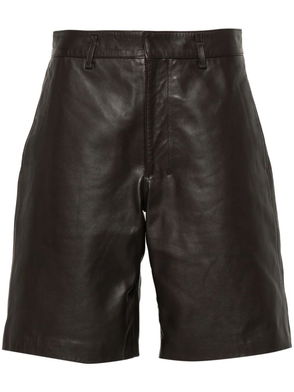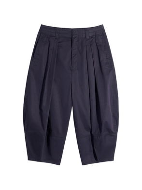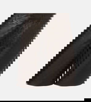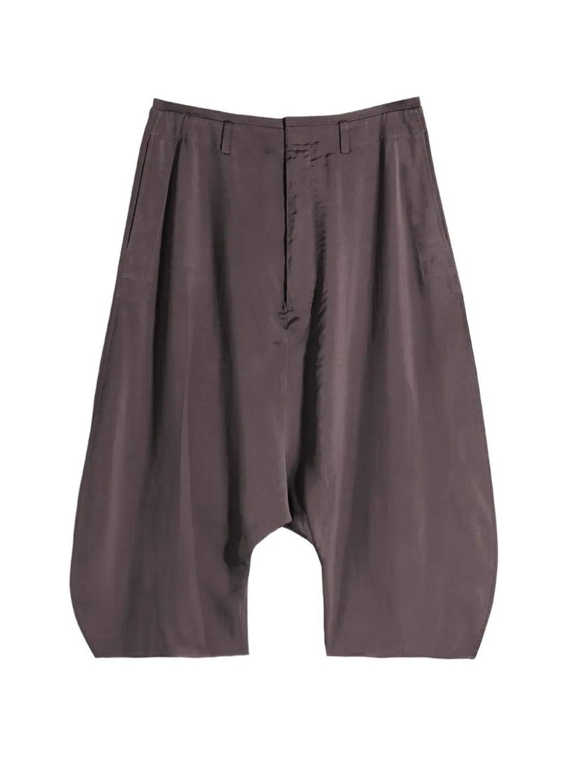 Brown wide leg dropped crotch front pleats belt loops side seam pockets.