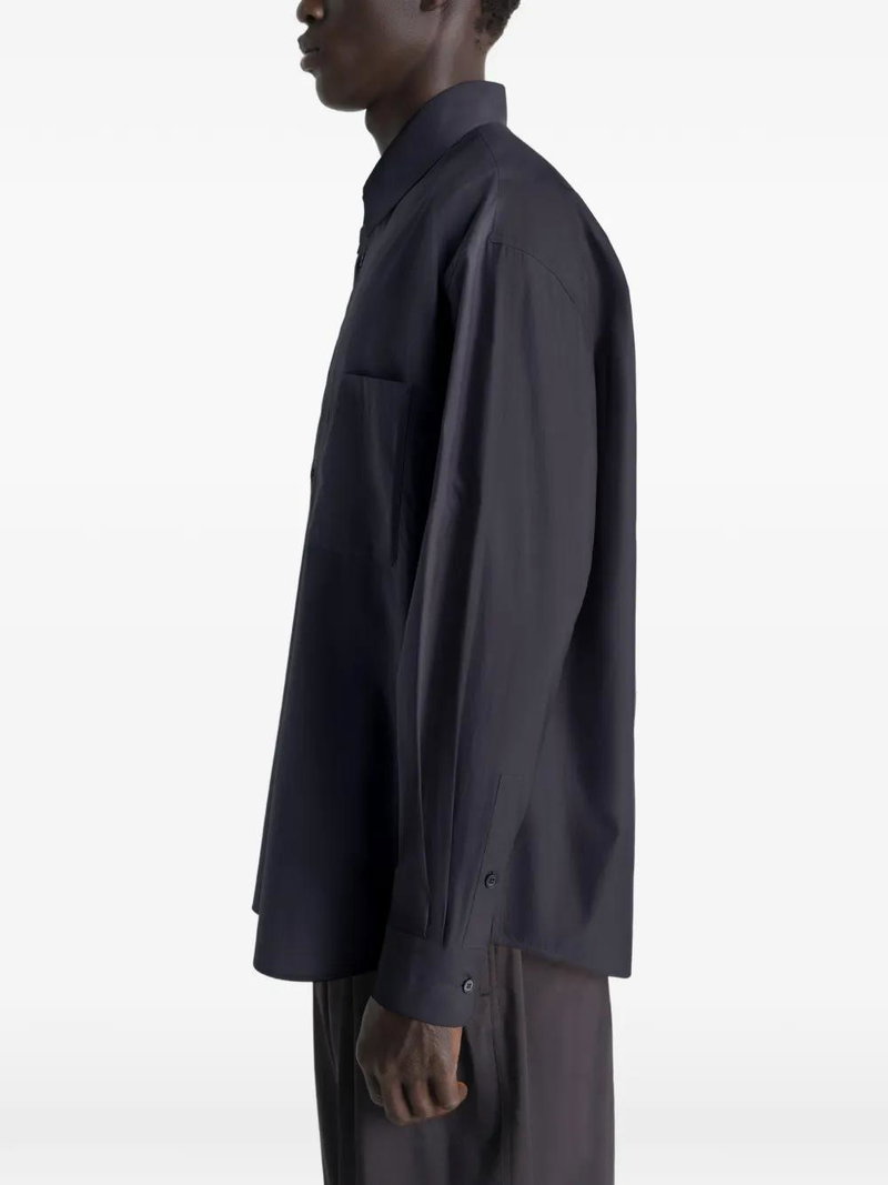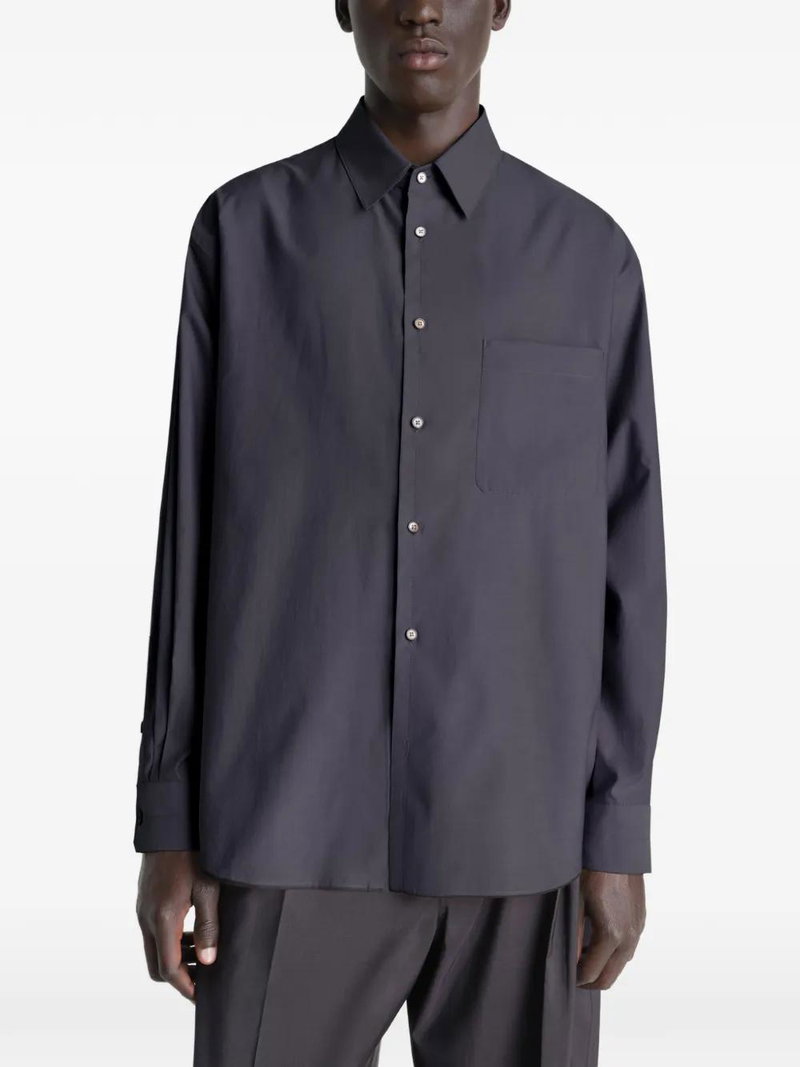 Grey chest-pocket button-fastening long-sleeves buttoned cuffs classic collar.