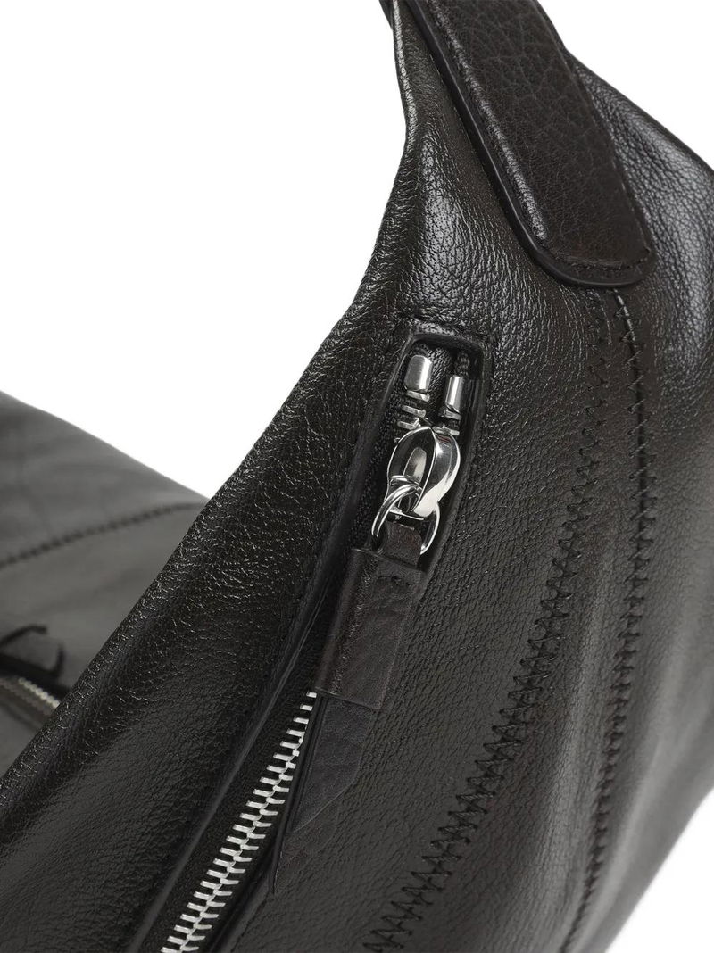 Dark brown zip fastening silver-tone hardware.