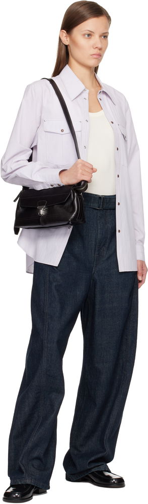 Vegetable-tanned buffed leather shoulder bag in black.· Adjustable and detachable shoulder strap· Concealed patch pocket at face· Rivets at face and sides· Logo embossed at back face· Foldover flap · Patch pocket at interior· Cotton canvas lining.