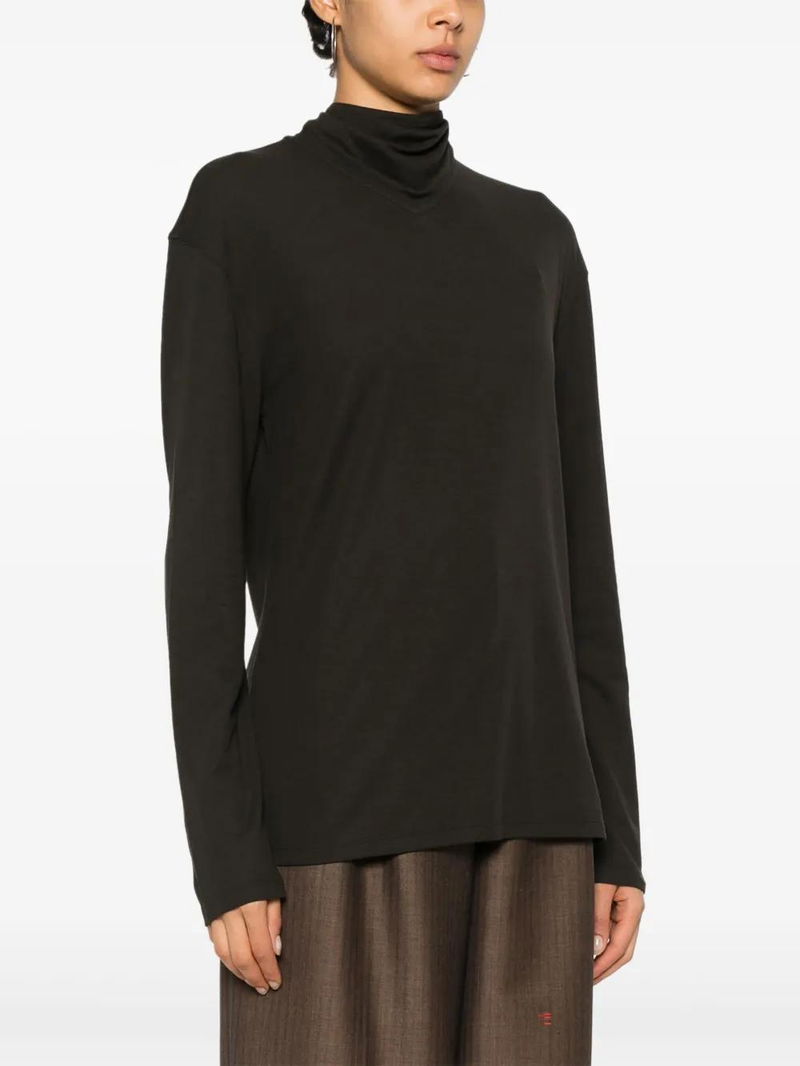 Scarf-detail Long-sleeve Top - Brown