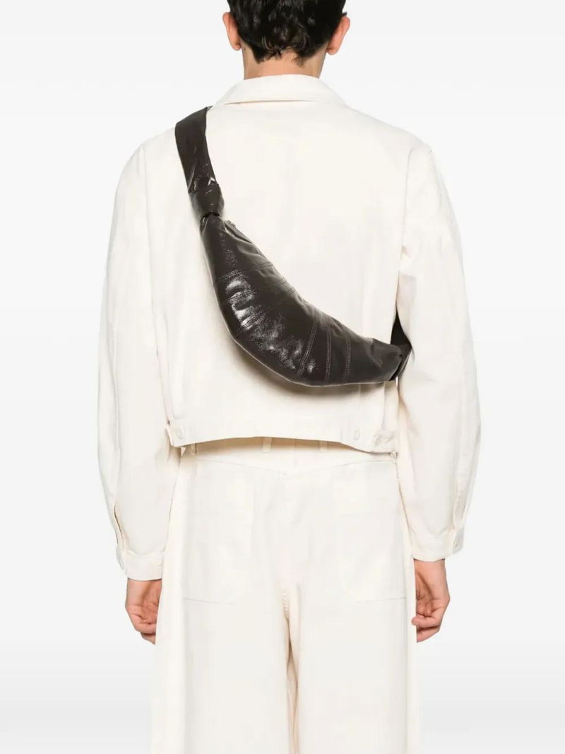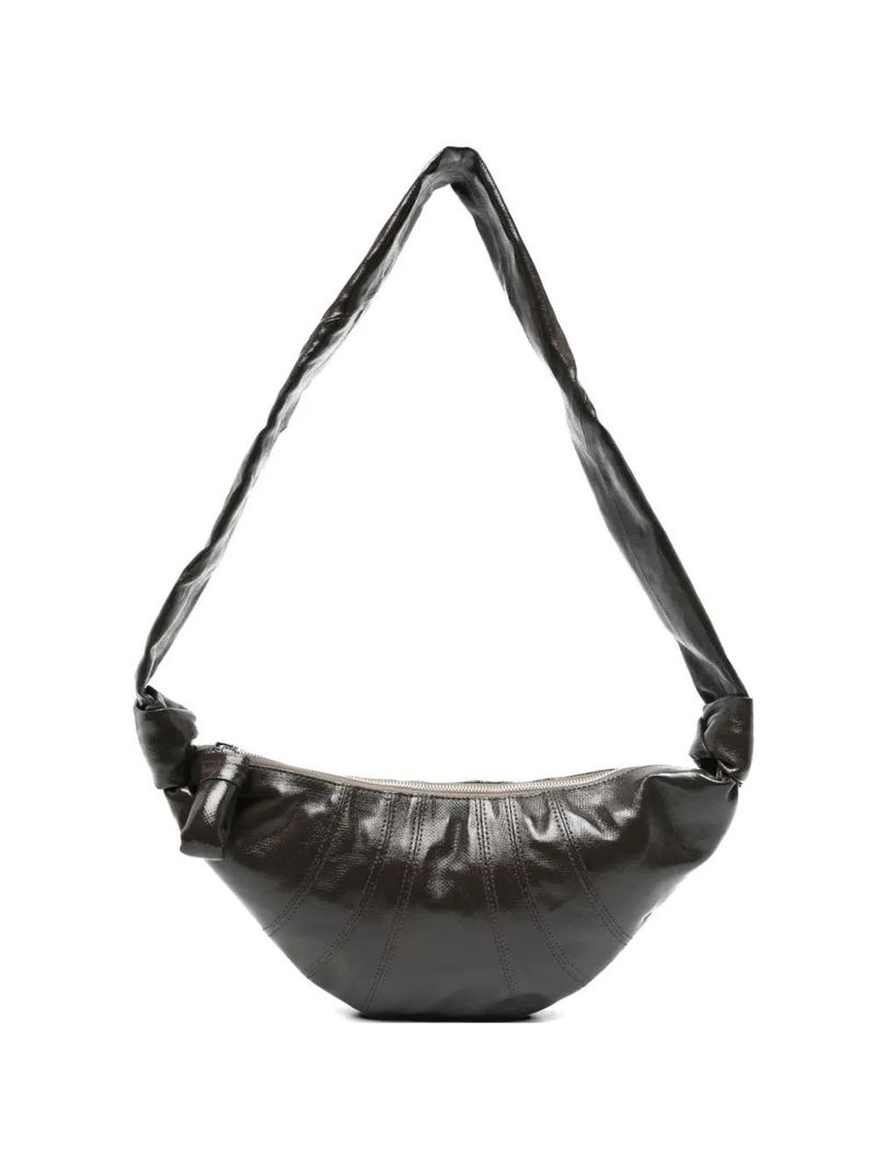 Truffle brown, knotted detailing, zip fastening, single shoulder strap, signature croissant silhouette, main compartment.