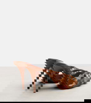 Vegetable-tanned buffed leather heeled sandals in burgundy. · Open square toe· Pin-buckle strap at vamp and ankle· Logo stamp at padded footbed· Buffed calfskin lining· Stacked leather block heel with rubber injection· Leather sole.