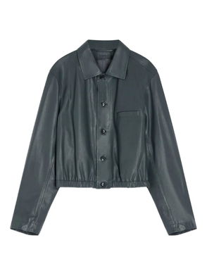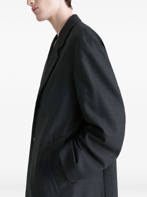 Carbon, rounded shoulders, small collar, double-breasted front, button fastening, chest welt pocket.