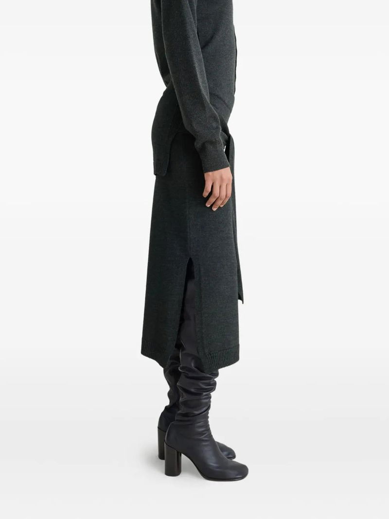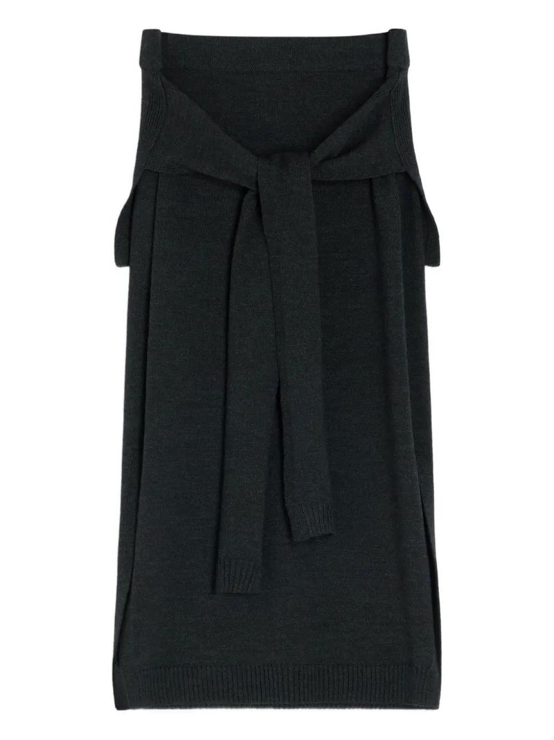 Tie-around Ribbed Midi Skirt - Grey