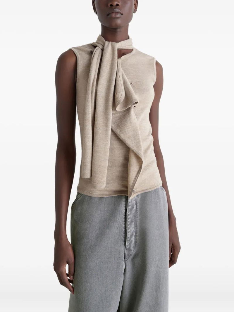 Tie-neck Asymmetrical Sleeveless Cardigan - Neutrals
