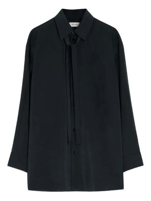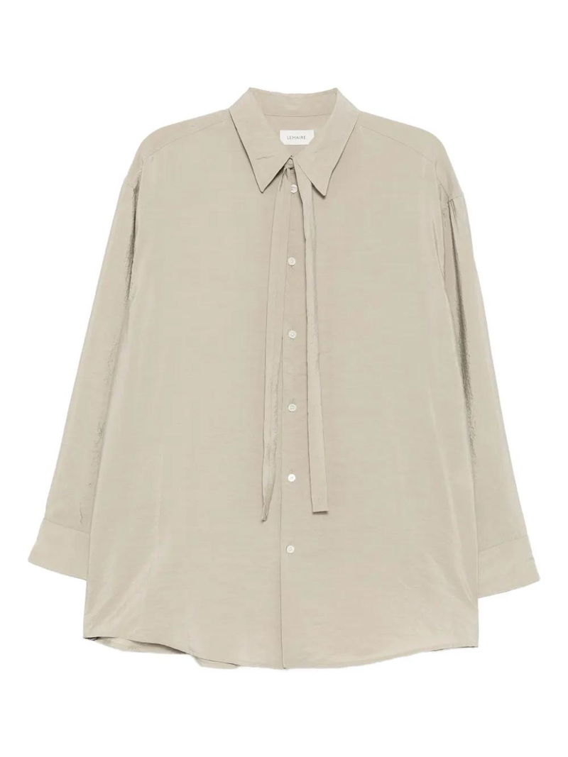 Ecru front button fastening detachable tie buttoned-cuff sleeves.