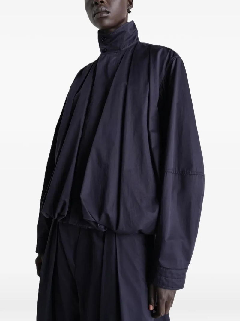 Blue turtleneck long sleeves gathered hem tonal stitching.