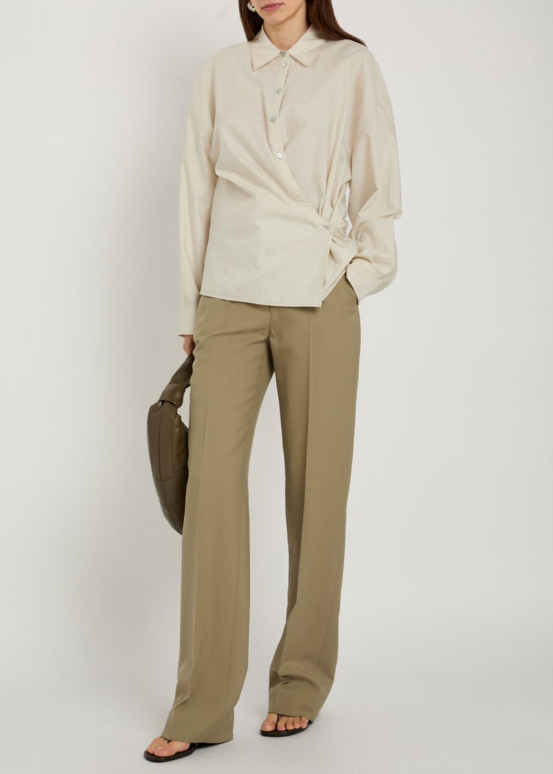 The Lemaire wardrobe is designed to be modular, with supple silhouettes and a soft colour palette allowing outfits to be restyled and accented over time. Collections are produced in Europe, Turkey and Morocco. Bags and leather goods are made in Spain and Italy, where a collaborative effort with artisans has brought novel approaches to age-old techniques.