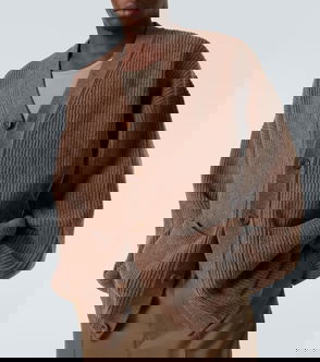 Lemaire opts for simplicity, emphasizing shape and proportion in their designs. This cardigan is knitted for a close fit from certified wool in a rich 'Aubergine' shade and has a high funnel neckline.