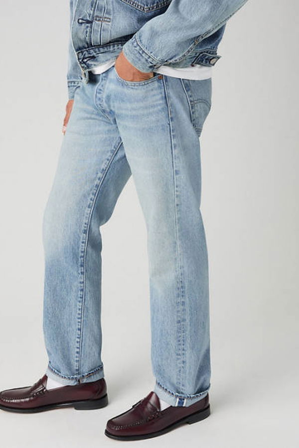 Close your eyes. Think "jeans." Now open. They were 501® Originals, right? With a classic straight leg and iconic styling, they're literally the blueprint for every pair of modern jeans in existence-burned into the world's collective cortex ever since Levi Strauss (the man himself!) introduced them in 1873. To this day they've never gone out of style. And they never will. The original blue jeans. Our signature straight fit. A blank canvas for customization and self-expression. These durable selvedge jeans were woven on a traditional narrow-width shuttle loom-making them highly covetable. Roll up the cuff to show off the selvedge ID. Made with non-stretch denim.