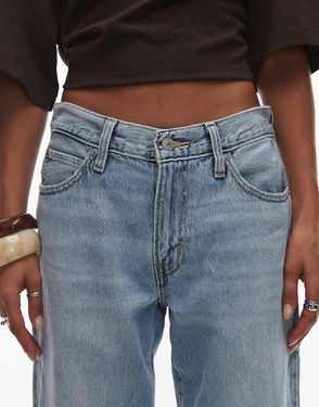 It’s time for a 90s redux. Straight leg cut Baggy fit Mid rise Belt loops Zip fly Five pockets Hem designed to stack at the shoe.