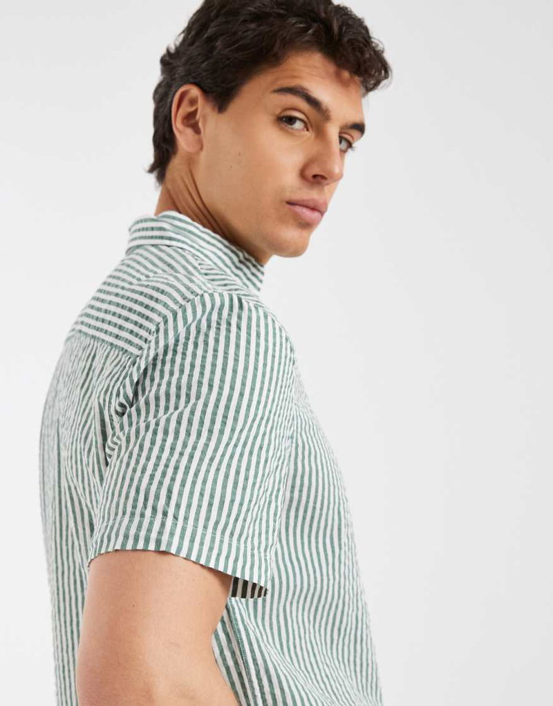 Authentic Short Sleeve Shirt Co-ord In Green Stripe