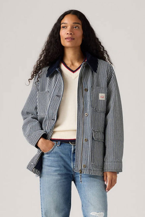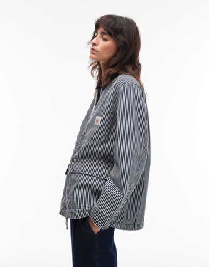 The layer you've been looking for: The Bree Barn Striped Jacket. They designed it with a zip and button-up front, a relaxed fit and a longline silhouette.