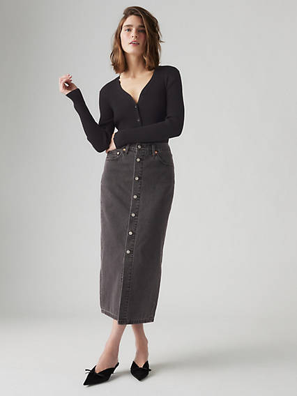 It doesn't get more timeless than our Button Midi Skirt. We gave it a mid rise, a button-up front and finished it off with the perfect midi length.
